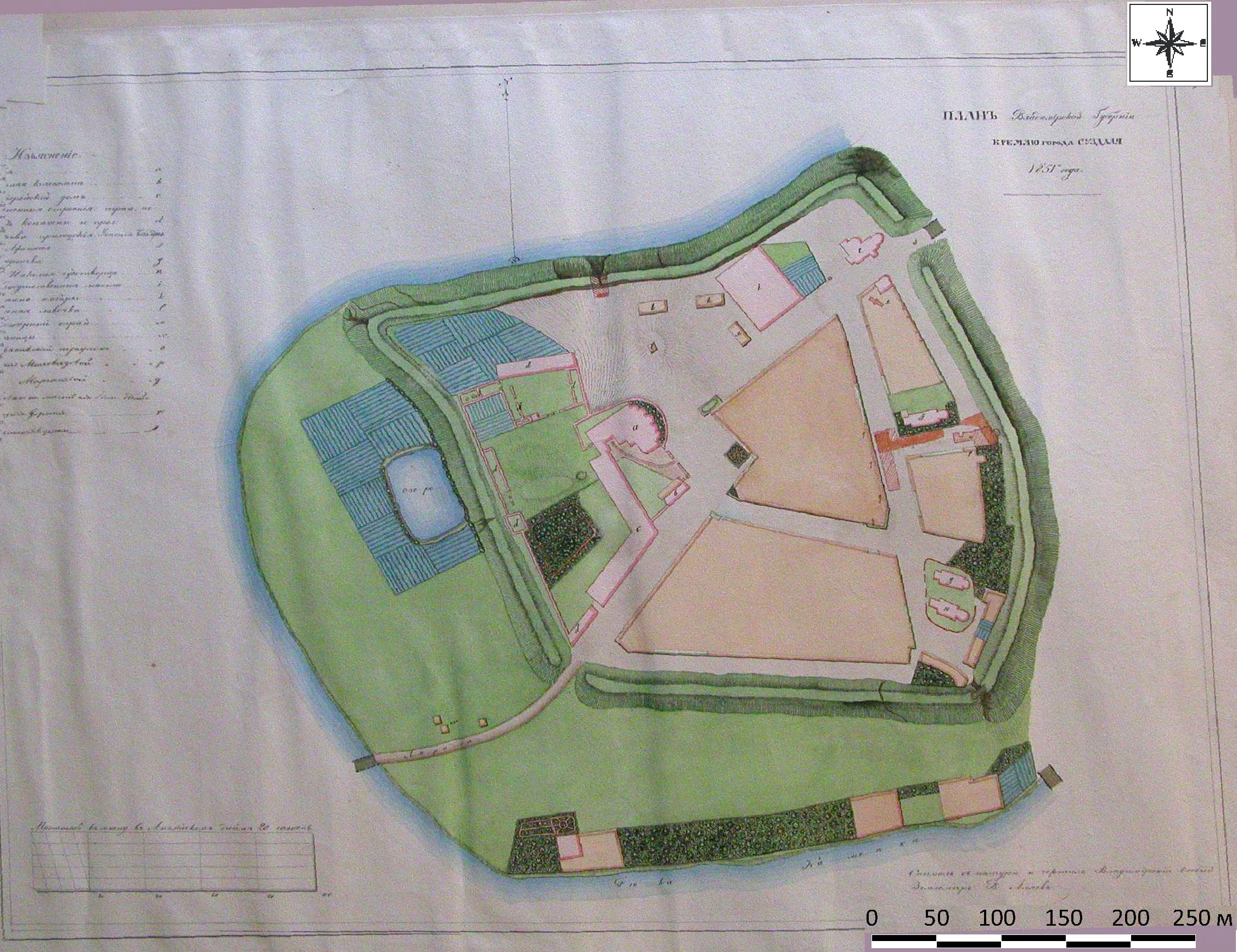 «План Владимирской губернии Кремлю города Суздаля 1851 года», снятый владимирским землемером Василием Аляевым для документирования полевых работ А.С. Уварова