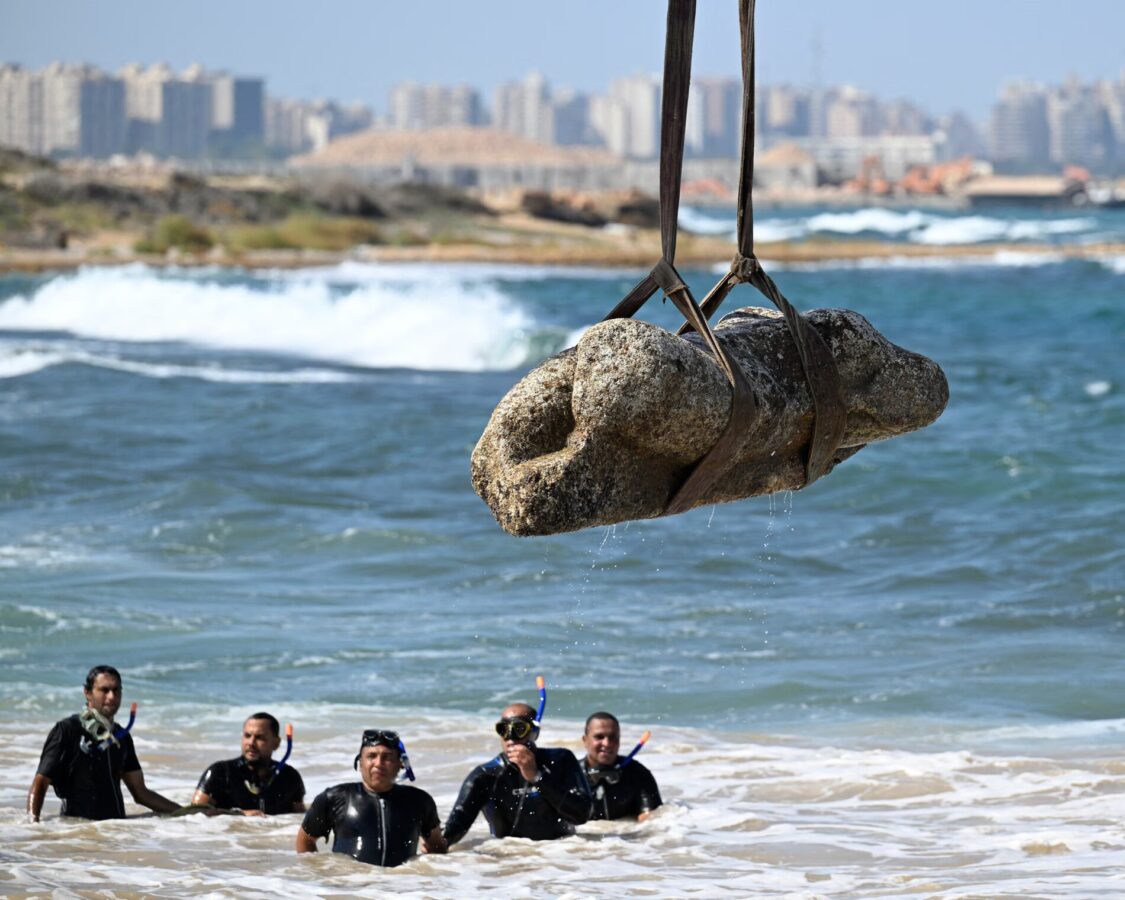 Под водой в заливе Абу-Кир археологи обнаружили останки древнего Канопуса — важного культурного и религиозного центра Египта. Землетрясения и повышение уровня моря когда-то погрузили его вместе с портом Гераклеоном на дно. Теперь краны и водолазы медленно извлекали на поверхность фрагменты истории: известняковые здания, статуи и элементы древней инфраструктуры.