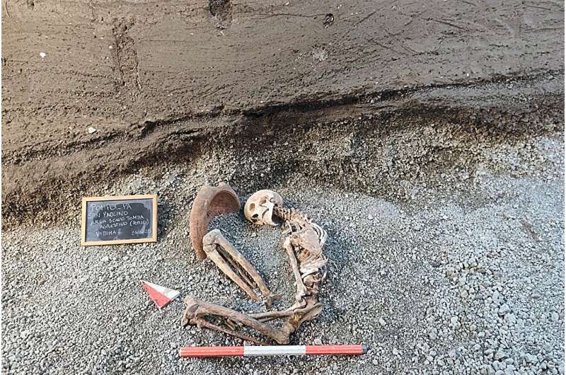 Останки были найдены еще в прошлом веке у некрополя Порта Стабия, прямо за крепостными стенами города. Погибший лежал с терракотовой ступкой на голове — археологи сразу поняли, что это была отчаянная попытка защититься. Античные тексты, в том числе письма Плиния Младшего, подтверждают: жители Помпей действительно использовали подручные предметы для самозащиты, когда небо обрушило на город тонны пепла.