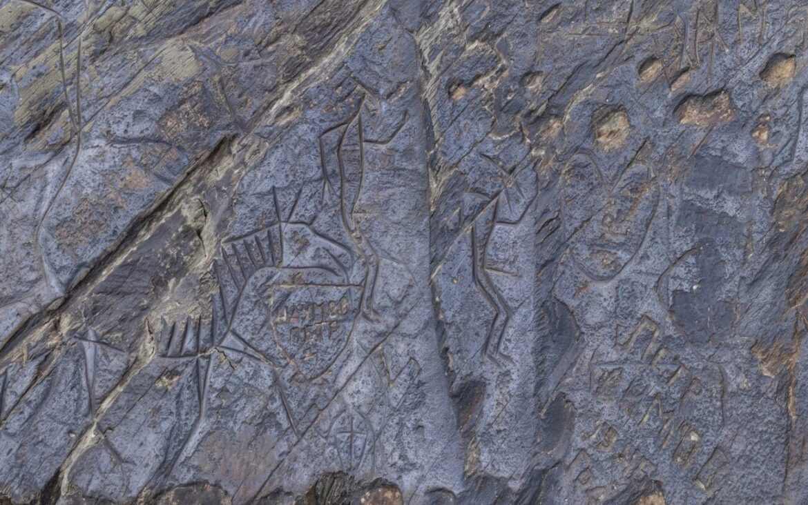 Томская писаница, Кузбасс. Фрагмент плоскости с изображениями. Изображение людей (?) в
