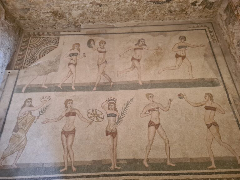Особенную известность получила мозаика "Девушки в бикини", на которой изображены молодые спортсменки в одежде, напоминающей современные купальники. В 1997 году Вилла Романа дель Казале была включена в перечень объектов Всемирного наследия ЮНЕСКО.
