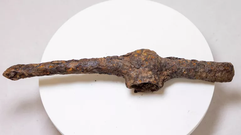 Железный боевой топор, редкое оружие для своего времени, поскольку железо получило широкое распространение в Сибири лишь спустя пять веков. Фото: Пресс-служба Сибирского федерального университета / Евгений Пузин