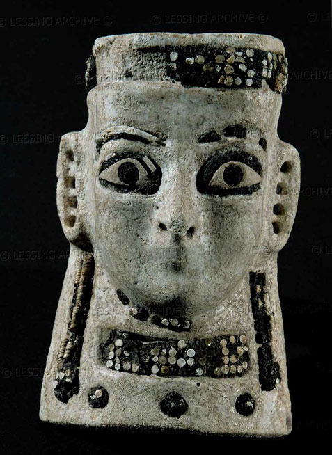 При раскопках резиденции жрицы Гипарку в Уре были найдены несколько фаянсовых женских голов, датируемых примерно тем же временем — с XIV по XII века до н.э. Одна из них, особенно крупная и искусно инкрустированная, теперь экспонируется в Иракском музее в Багдаде, была обнаружена в могиле главной жрицы Нанны — богини Луны.
