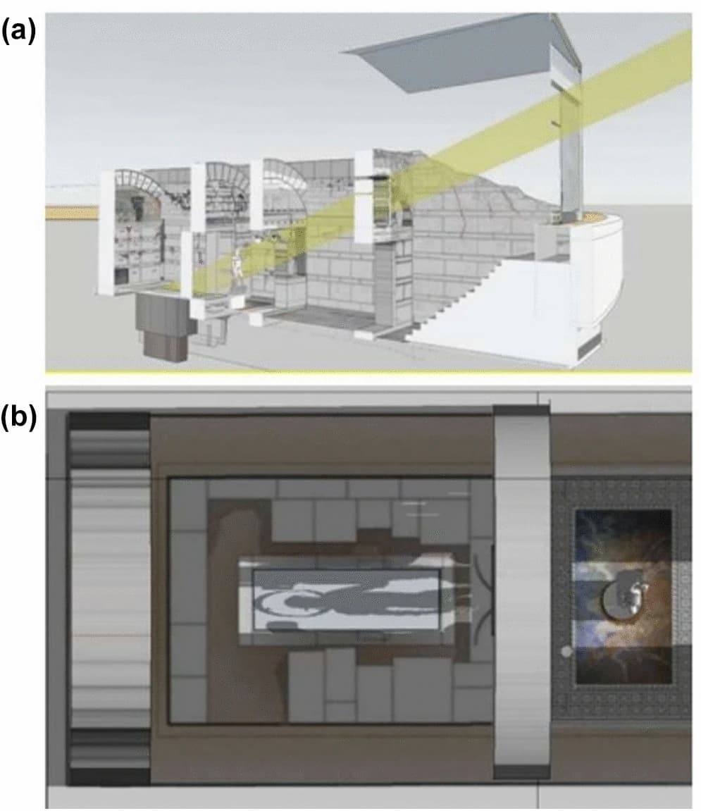 Конструкция монумента предполагает взаимодействие с солнцем на протяжении всего года. Исследование показывает, что летом и осенью солнечный свет постепенно проникает во внешние помещения, освещая мозаики и лестницы в определенные дни. Зимой свет достигает самой глубокой точки в погребальной камере, а весной цикл начинается заново, символизируя возрождение или обновление.