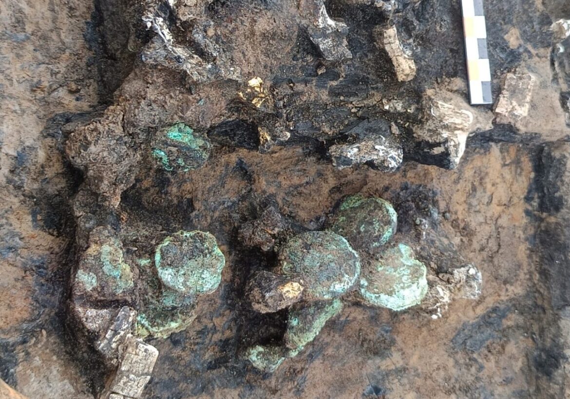 В процессе раскопок заполнения ямы были обнаружены пепел, уголь, останки сожженных костей и различные погребальные предметы. Все находки были тщательно задокументированы с использованием фотограмметрии, что позволило воссоздать трехмерную модель захоронения до его извлечения.