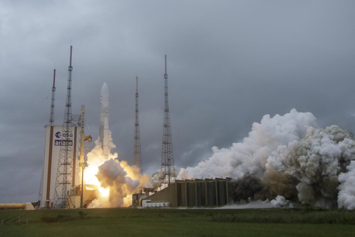25 декабря 2021 года ракета «Ариан-5», укомплектованная телескопом «Джеймс Уэбб», стартовала с космодрома Куру во Французской Гвиане (Южная Америка). Почти сразу после запуска с системами телескопа удалось наладить стабильную связь, и через полчаса на высоте 120 километров он отделился от ракеты, автоматически развернул солнечные батареи и коммуникационные антенны и отправился в самостоятельное путешествие. Развертывание солнцезащитного экрана и зеркал продолжалось в течение 13 дней после запуска под строгим контролем технических специалистов.