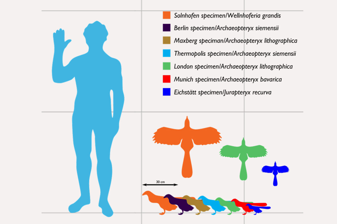 Размеры археоптерикса и сравнение с современными птицами