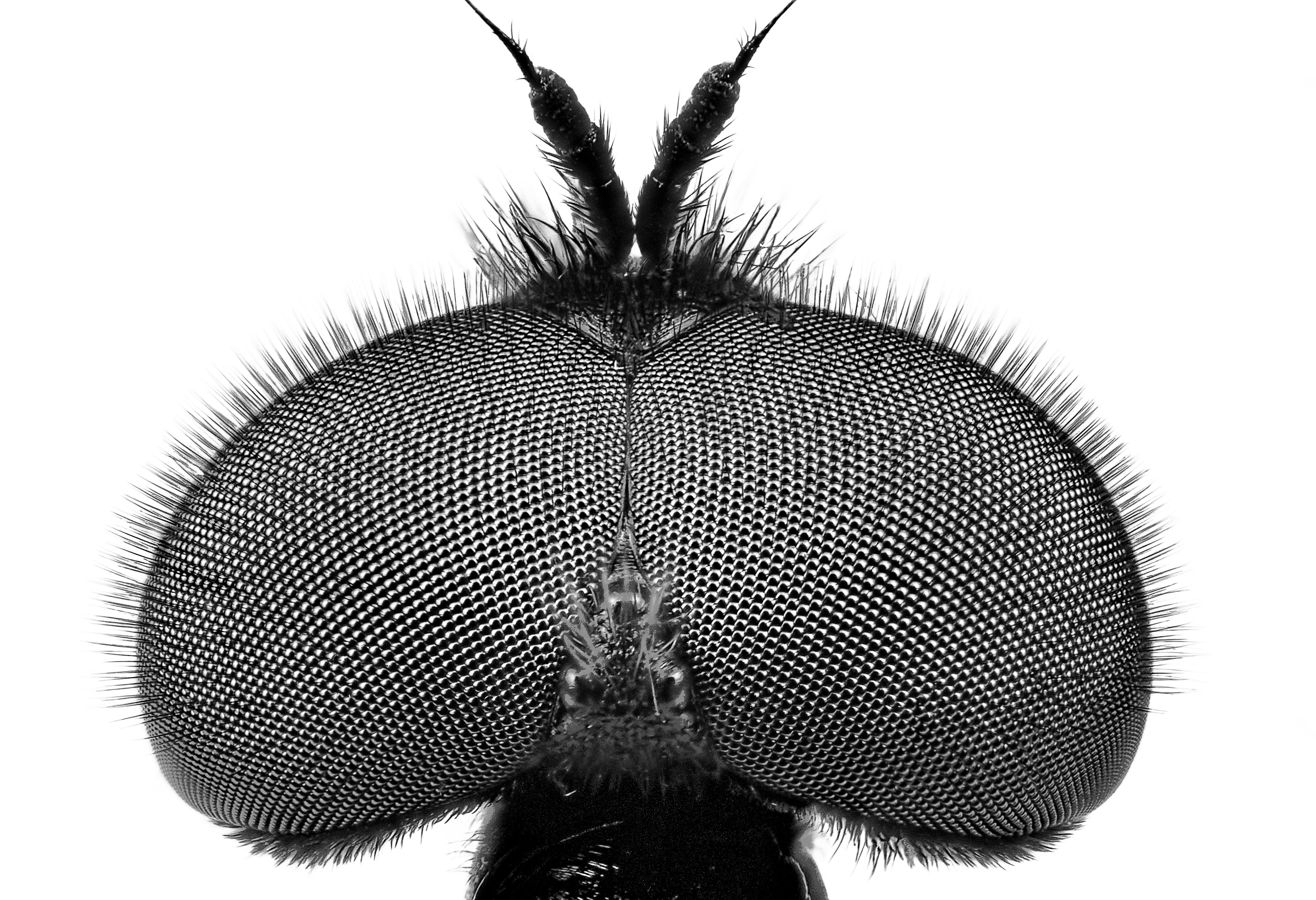 Глаз слепня. Вопреки своему названию, слепни хорошо различают фиолетовый, синий, голубой и зеленый цвета.