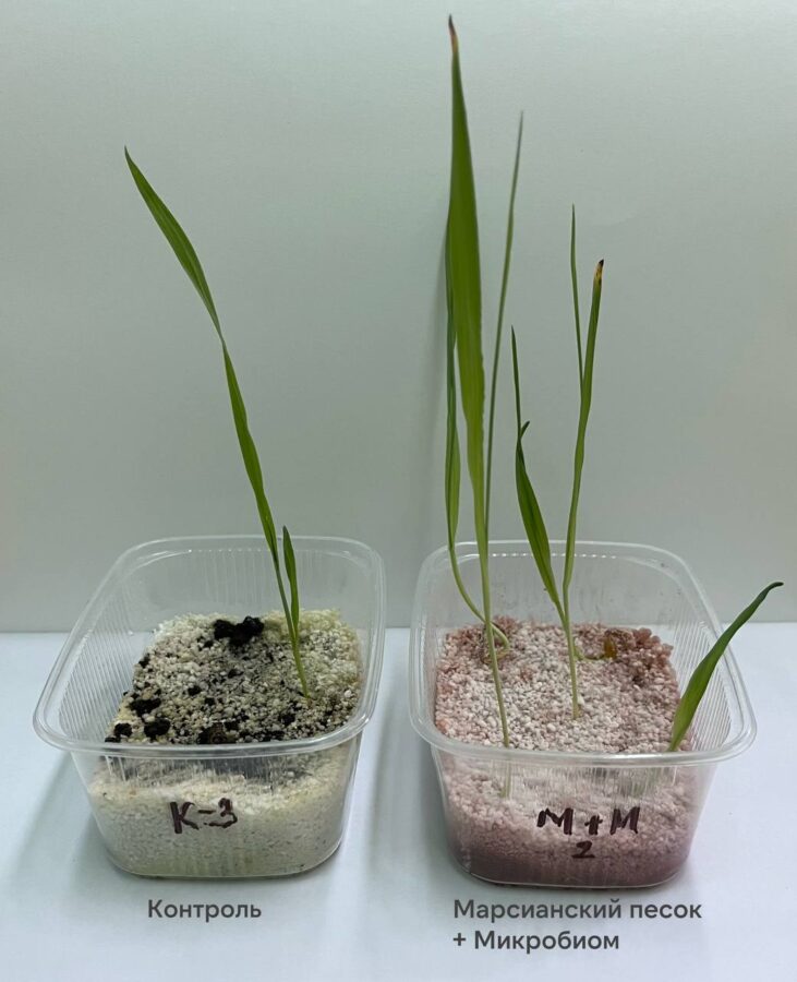 Однако у технологии есть и более амбициозная задача — освоение безжизненных субстратов, таких как почвы пустынь, Крайнего Севера или даже других планет. В лаборатории ЮФУ уже больше двух месяцев параллельно идет эксперимент по культивации этих бактерий в искусственном «марсианском» реголите. Этот грунт, хоть привезен и не с Марса, а из пустыни Мохаве, прекрасно имитирует свойства красного песка, покрывающего поверхность соседней планеты.