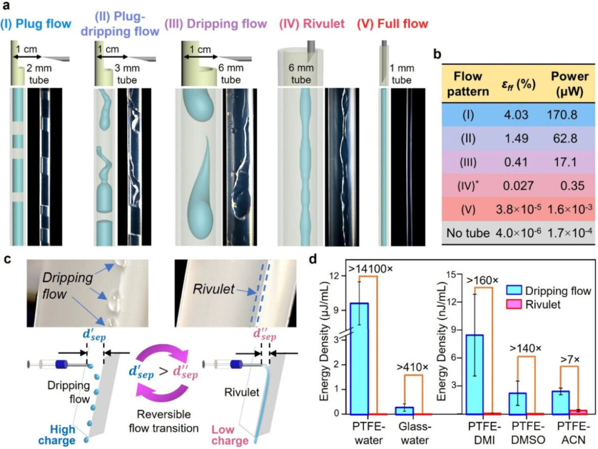 Исследование, опубликованное в ACS Central Science, описывает устройство, основанное на принципе поршневого потока. Когда дождевые капли попадают в вертикальные трубки диаметром 2 мм и высотой 32 см, они образуют чередующиеся участки воды и воздуха. Это усиливает электрическое разделение зарядов и позволяет эффективно преобразовывать кинетическую энергию воды в электричество.