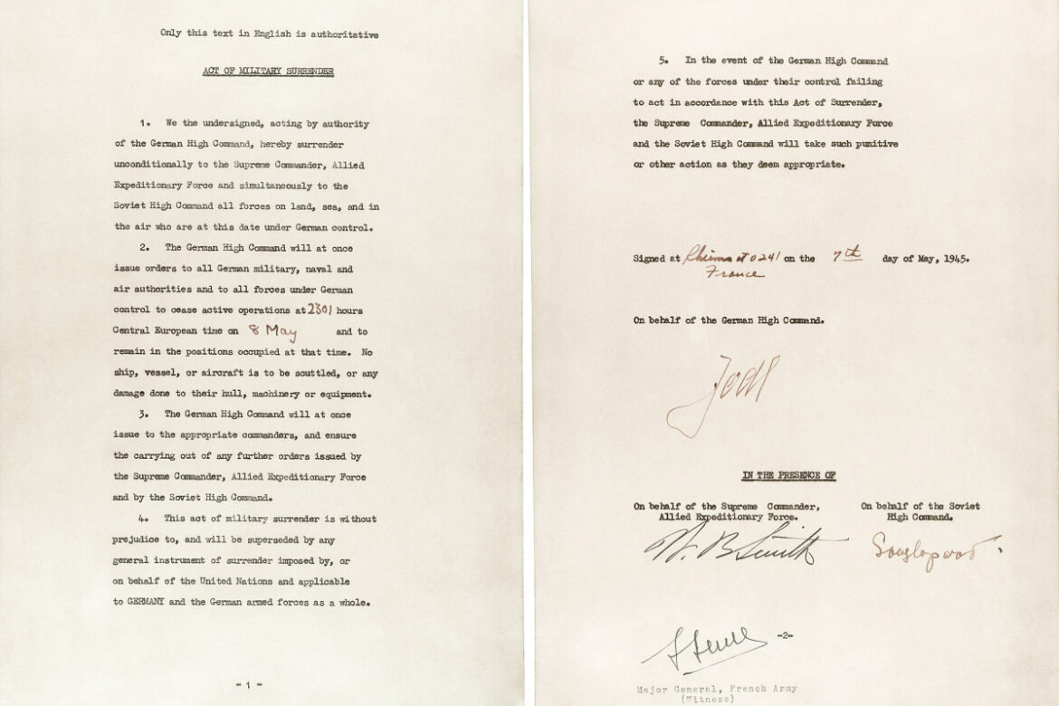 Со стоны Германии документ подписал генерал Альфред Йодль, начальник штаба оперативного руководства вермахта.