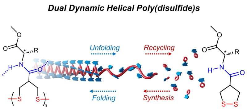 Ци Чжан, научный сотрудник Гронингенского университета, вместе с коллегами разработали и синтезировали такую молекулу на основе аминокислот и дисульфидов. При низких температурах она скручивается в спираль, а при повышении температуры распрямляется. Чжан утверждает, что данные спиральные полимеры могут быть использованы для создания биоматериалов, способных взаимодействовать с клеточными мембранами или белками.