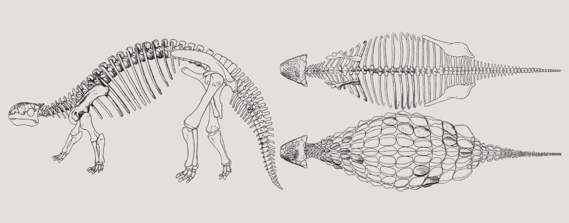 Подлинное строение значительной части скелета анкилозавра, в том числе таза, лап и хвоста (прим. ред.: за исключением булавы) до сих пор известно скорее гипотетически, так как обнаружено слишком мало остатков этого животного. Мы с вами рассмотрим наиболее вероятные особенности внешнего вида, основанные на палеонтологических реконструкциях и сравнениях с родственными видами.