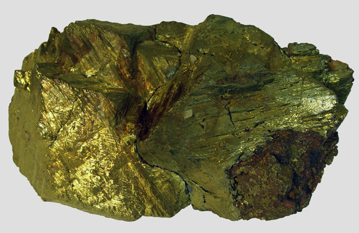 - Халькопирит (CuFeS2) — 34,5%. Хотя этот золотистый минерал замыкает наш рейтинг медных руд, он все же широко используется в металлургии. Дело в том, что порядка 70% мировых запасов меди сосредоточено именно в месторождениях халькопирита. Визуально халькопирит очень похож на золото, однако его можно легко отличить по хрупкости и невысокой плотности.