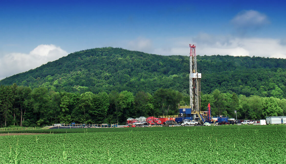 Для добычи сланцевого газа специалисты используют гидроразрыв пласта, или фрекинг (прим. ред.: в переводе с английского языка «fracking» означает «гидроразрыв»). Так как проницаемость сланцевых пород очень низка, в них делают трещины для обеспечения потока газа. В породы закачивают смесь воды и расклинивающего вещества — обычно песка с добавлением едких химикатов, буквально раскалывающих твердые породы. Затем по этим каналам природный газ поступает в горизонтальные или вертикальные скважины.