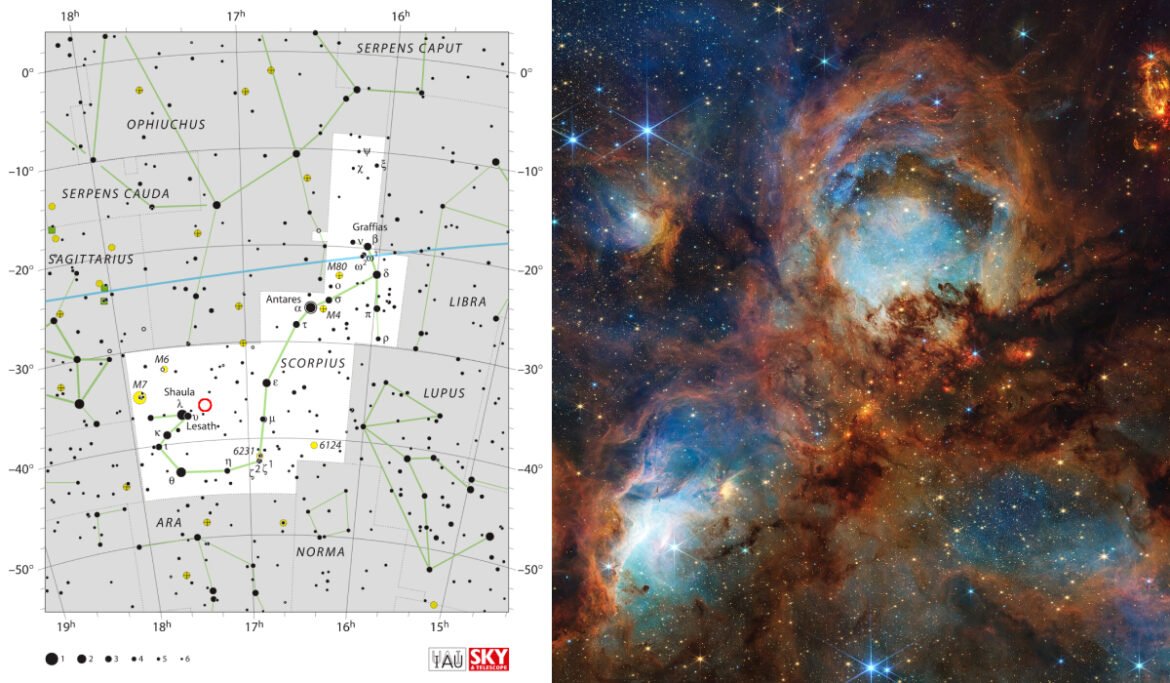 В далеком космосе, примерно в 5 000 световых лет от нас находится удивительно красивый и весьма ценный для науки астрономический объект — туманность NGC 6334. Благодаря своей необычной форме, на снимках похожей на след животного, туманность получила забавное неофициальное название — «Кошачья лапа». Между тем под этим милым прозвищем скрывается гигантский бурлящий котел, где под воздействием гравитации рождаются тысячи новых звезд. Из этой статьи вы узнаете о главных свойствах NGC 6334, особенностях ее звездообразования, а также некоторые увлекательные факты о туманности Кошачьей лапы.