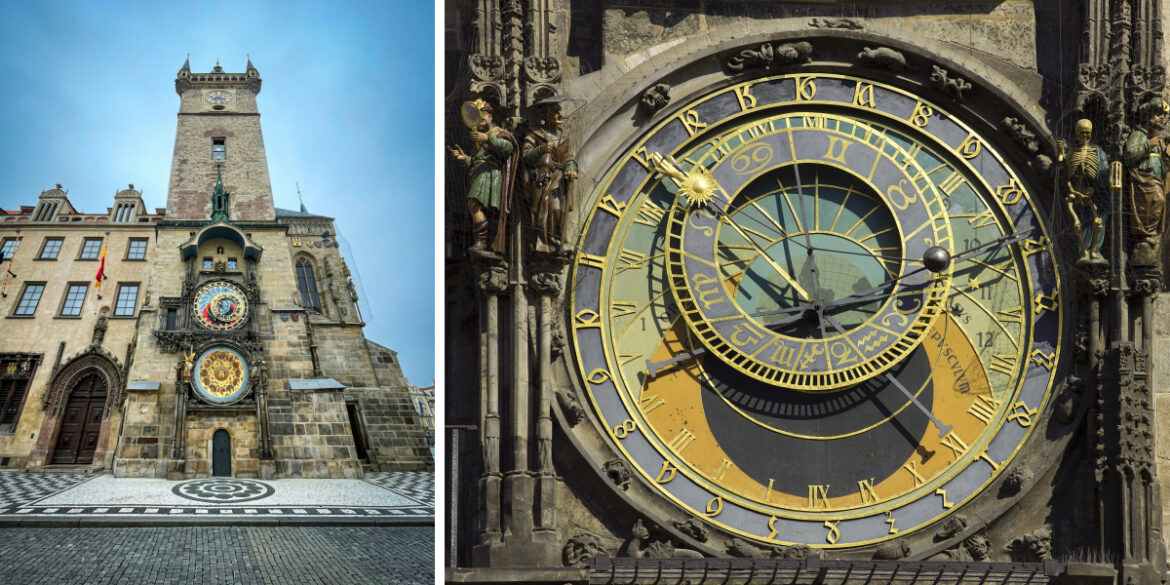 Средневековые часы на Староместской башне в Праге — Чешский орлой — знамениты своей сложной конструкцией с часовым, астрономическим и календарным циферблатами и тем, что это самые старые действующие астрономические часы в мире.
