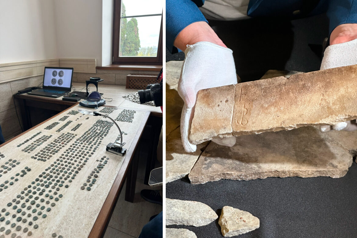 В ходе одного из подводных погружений 2011 года археологи-водолазы подняли со дна хорошо сохранившийся корпус деревянного корабля. Судя по всему, это было внушительное судно длиной около 16 метров, выполненное из разных материалов: дуба, ясеня и сосны. Изучив конструкцию корабля, они пришли к выводу, что когда-то он был частью флотилии понтийского царя Митридата VI Евпатора — на таране (прим. ред: таран – выступающая деталь, чаще всего металлическая, расположенная на носу корабля и предназначенная для повреждения обшивки и корпуса вражеского судна) сохранились изображения звезды и полумесяца, символов его власти. В 63 году до н.э. Митридат, ведший войну с Римом и отчаянно нуждавшийся в деньгах и людях, отправил в Фанагорию военную экспедицию, чтобы усмирить недовольных поборами и мобилизацией граждан, а также спасти от бунтовщиков своих детей, укрывавшихся в царском дворце. И обломки корабля красноречиво говорят о том, что добиться этих целей Митридату не удалось… Хотя его дети сдались толпе и выжили, сам царь вскоре после этого покончил с собой, понимая, что войну ему не выиграть. С этой историей связана и другая находка, сделанная в Фанагории: самый большой клад боспорских монет, который насчитывает почти 8 тысяч медных монет. Он был спрятан одним из зажиточных фанагорийцев во время городских волнений, вызванных Митридатовыми войнами, а спустя 2 тысячи лет археологи нашли его. Примечательно, что произошло это во время строительства научного центра фанагорийской экспедиции.