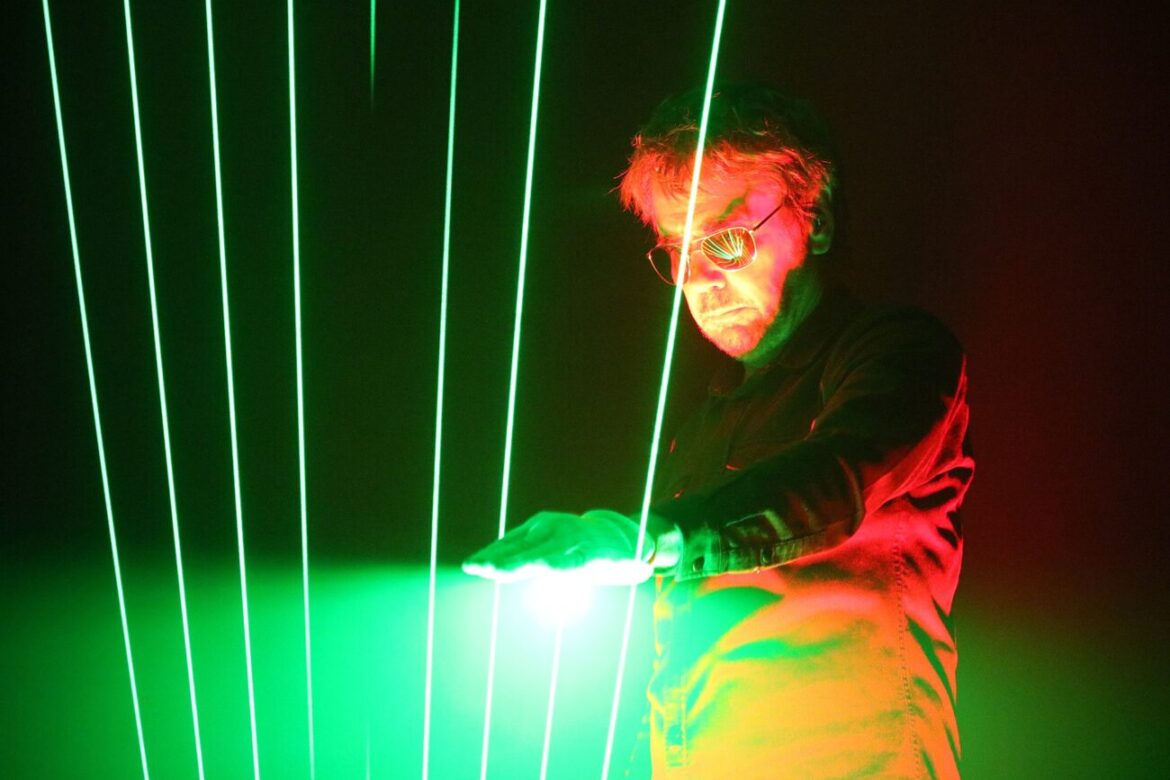 - Лазерная арфа. Такой инструмент использует знаменитый французский композитор Жан Мишель Жарр. Она представляет собой пучок лазерных лучей. Чтобы получить заданный звук, нужно перекрыть луч, соответствующий высоте. Звукоизвлечение происходит немного разными способами. Например, во фреймовой лазерной арфе лучи светят на ряд фотодатчиков. Если луч перекрывается рукой исполнителя, датчик подает электрический сигнал, который преобразуется в звук. В открытых лазерных арфах датчики расположены внизу и срабатывают от лучей, отражающихся от ладоней музыканта.