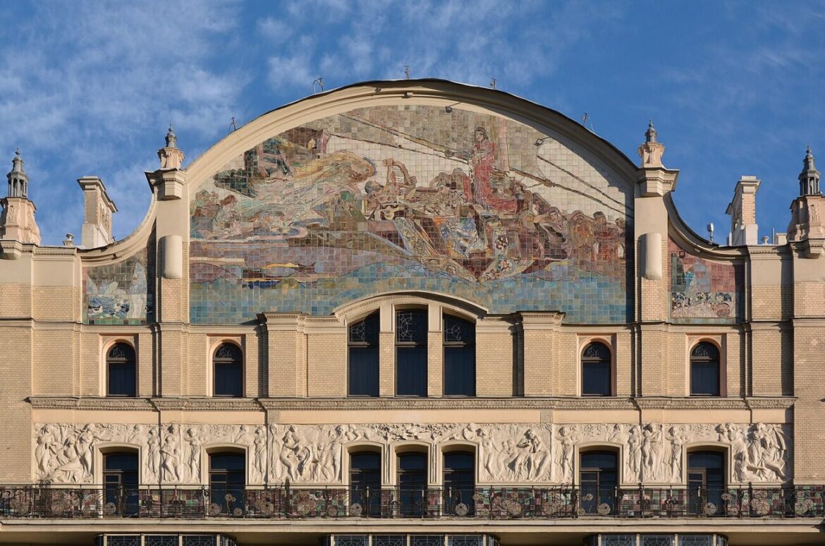- маскароны, картуши и другие декоративные мотивы, отражающие эстетику модерна, украшающие фасад;