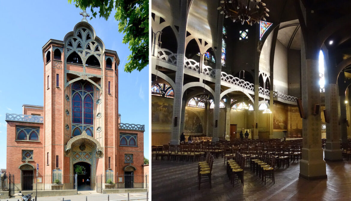Первой постройкой религиозного назначения во Франции, возведенной из железобетона, стала церковь Сен-Жан-де-Монмартр в Париже (1894–1904). Она была выполнена в эстетике ар нуво с применением открытых железобетонных конструкций в интерьере. В своем проекте архитектор Анатоль де Бодо использовал разработанный инженером Полем Коттансеном способ армирования металлической проволокой пустотелой кирпичной кладки, заполненной бетоном. Внешние стены церкви имеют толщину всего в 7 см, а внутренние колонны – высоту в 25 м при диаметре всего в полметра. Метод с использованием железобетона, более легкого по сравнению с каменной кладкой и в то же время прочного, позволил увеличить высоту здания, выполнить большие витражные окна и сделать интерьер просторным и наполненным воздухом.