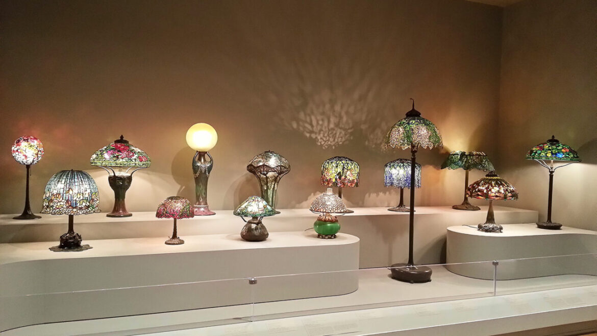 Но большей известностью пользуются его лампы, с которыми и ассоциируется стиль Тиффани. С изобретением в 1880 году Томасом Эдисоном лампочки накаливания свет стал одним из инструментов и художественных приемов дизайнеров ар-нуво. Тиффани выдумал лампы с абажурами, выполненными в технике оконных витражей: кусочки стекла, насыщенный цвет которых дал название стеклу Тиффани – «пламенеющее», оправлялись в свинцовые переплеты и соединялись между собой. Когда щелкал выключатель, лампа начинала источать окрашенный свет.