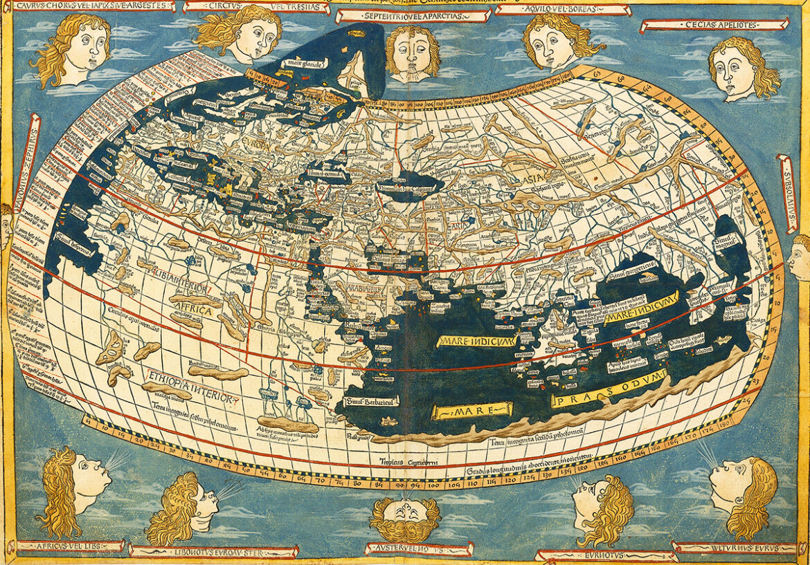 Основанием для создания земной модели сферической формы в древности служили карты и географические знания, подробно описанные греко-римским математиком, астрономом, астрологом, географом и теоретиком музыки Клавдием Птолемеем в одном из самых масштабных его трудов — трактате «География». В нем ученый опирался на более ранние работы географа Марина Тирского (прим. ред.: финикийский географ и картограф, основатель математической географии), а также на географические справочники Римской и древней Персидской империй. Трактат «География» состоит из трех разделов.