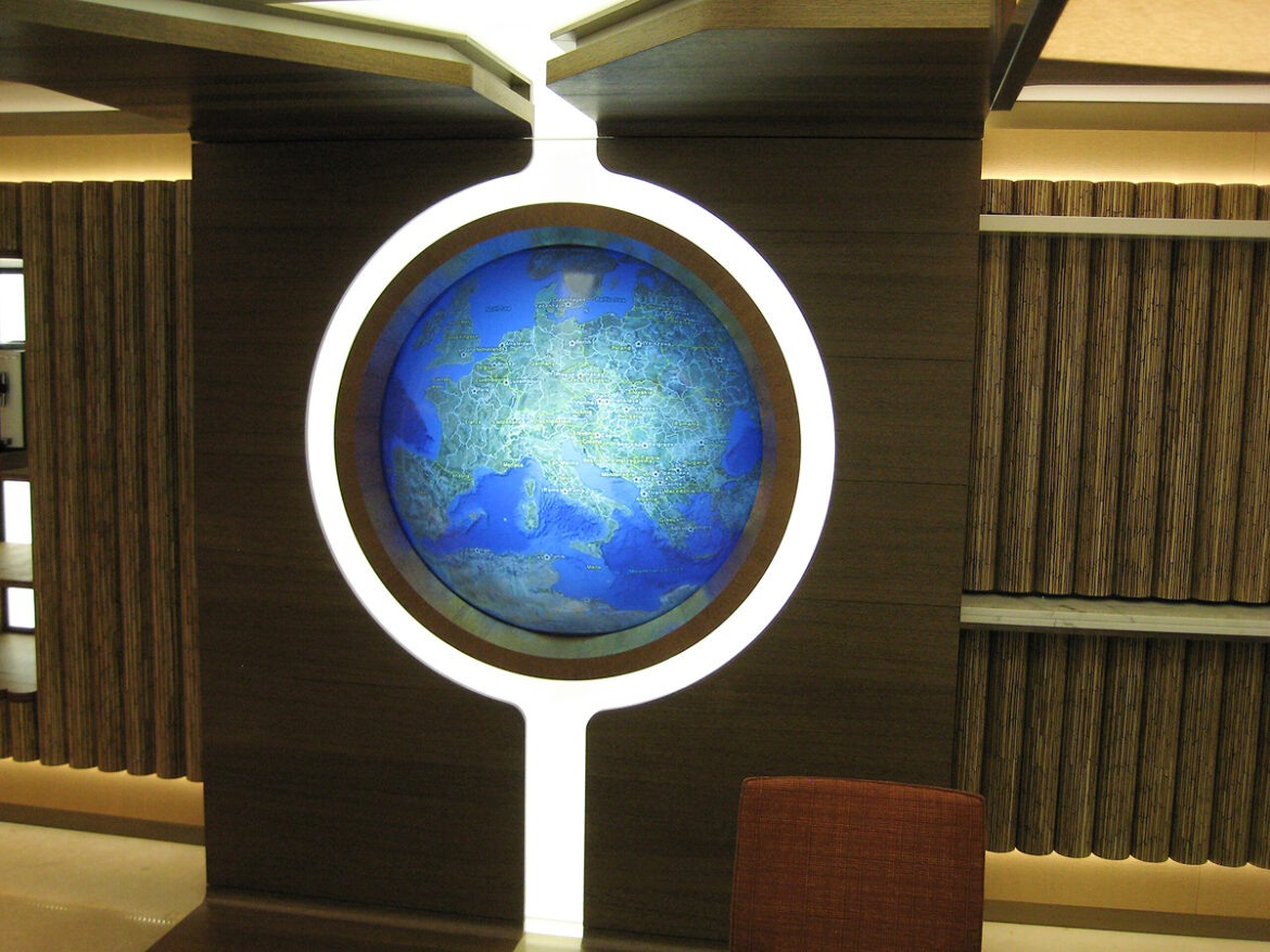 «Земля»(Eartha) — это самый большой в мире вращающийся глобус. Он находится в бывшей штаб-квартире американской картографической корпорации DeLorme в Ярмуте, штат Мэн. Весит около 2,5 тонн и имеет диаметр 12,5 м. Масштаб: 1 мм = 1 км. Сконструирован в 1998 году.