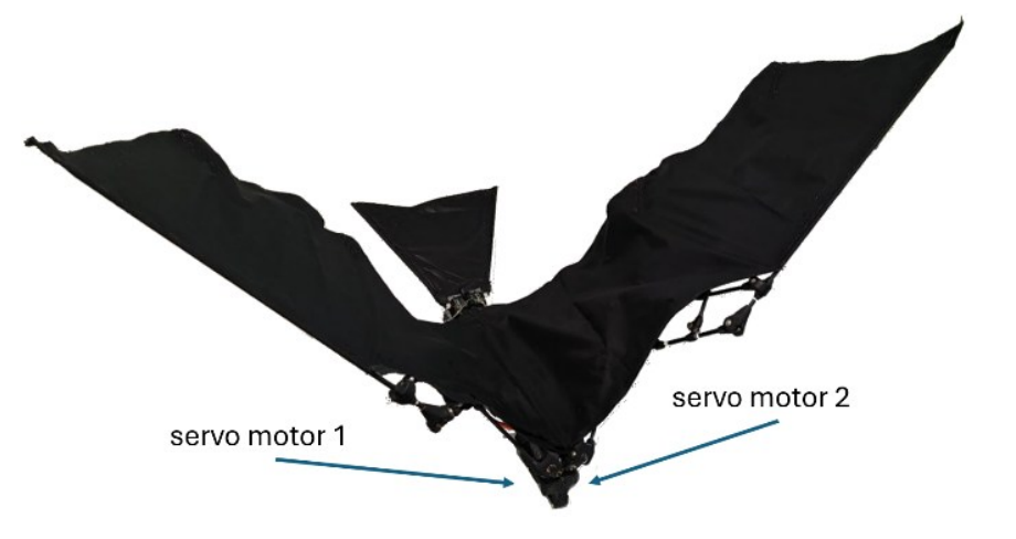 Прототип робота птицы (орнитоптера), оснащенного двумя отдельными сервомоторами.